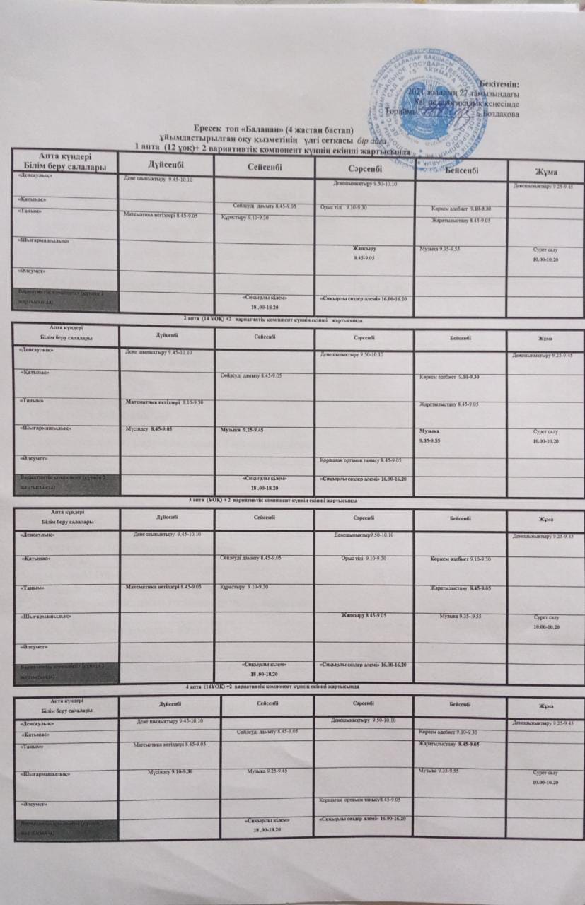 21-22ж АРАЛАС КҮН ТӘРТІБІ балапан |