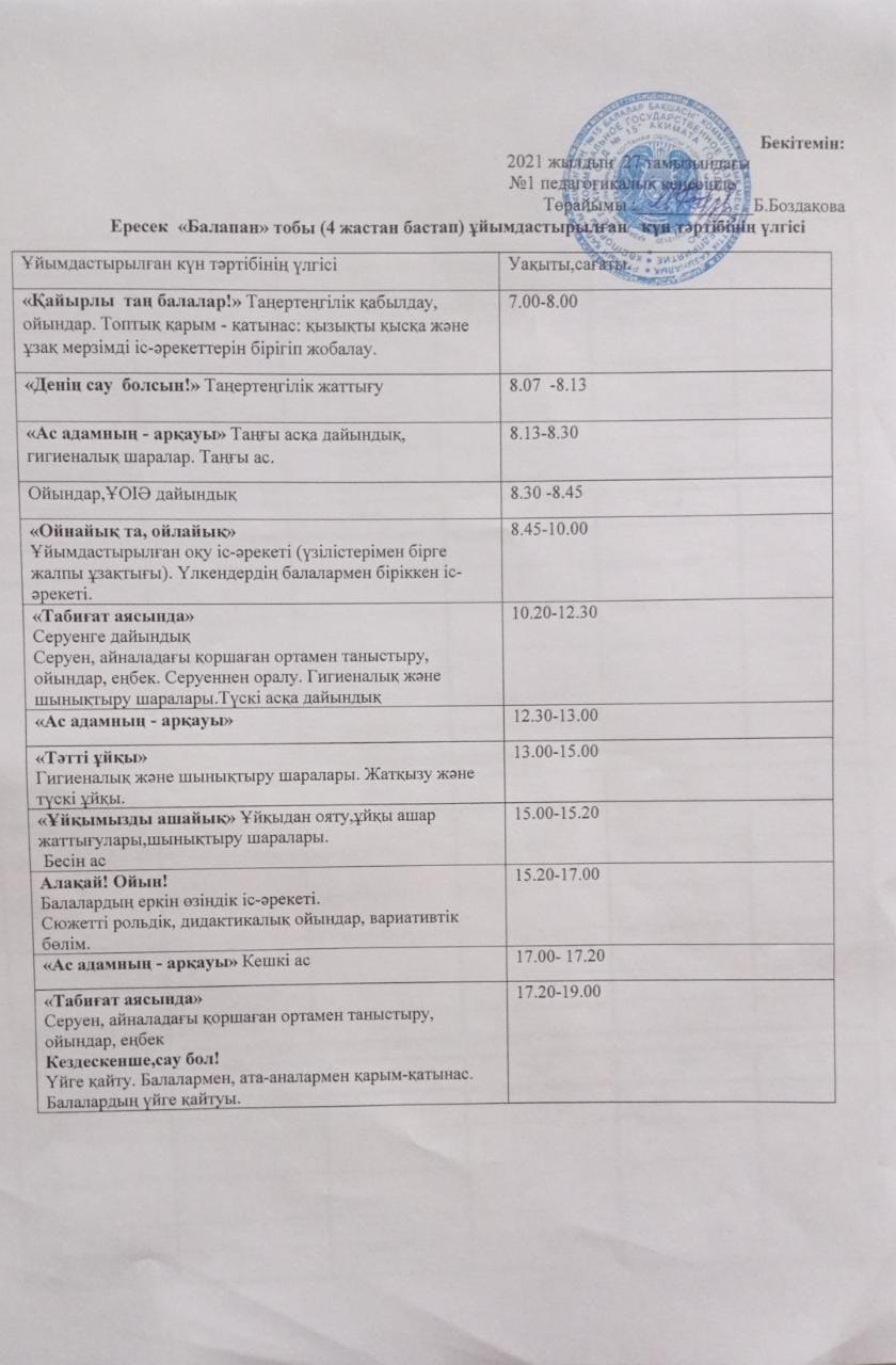 20-21 күн тәртібі Балапан |