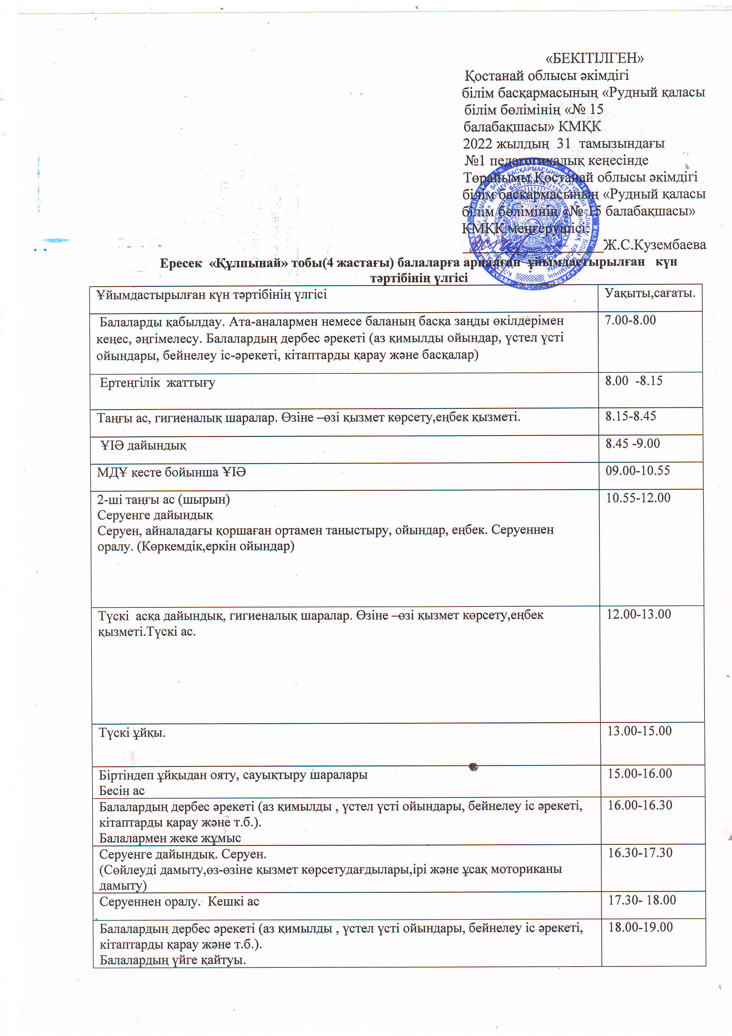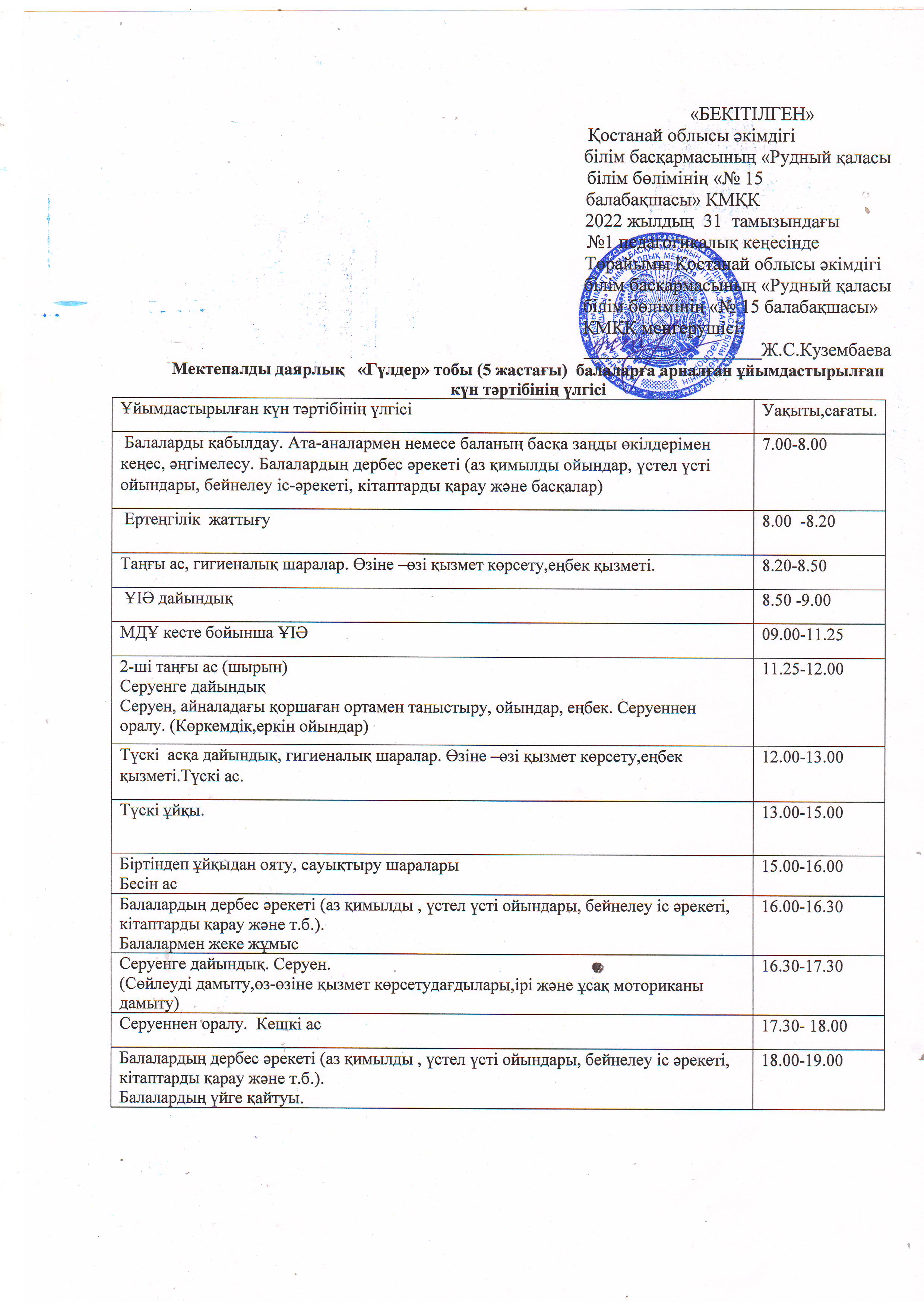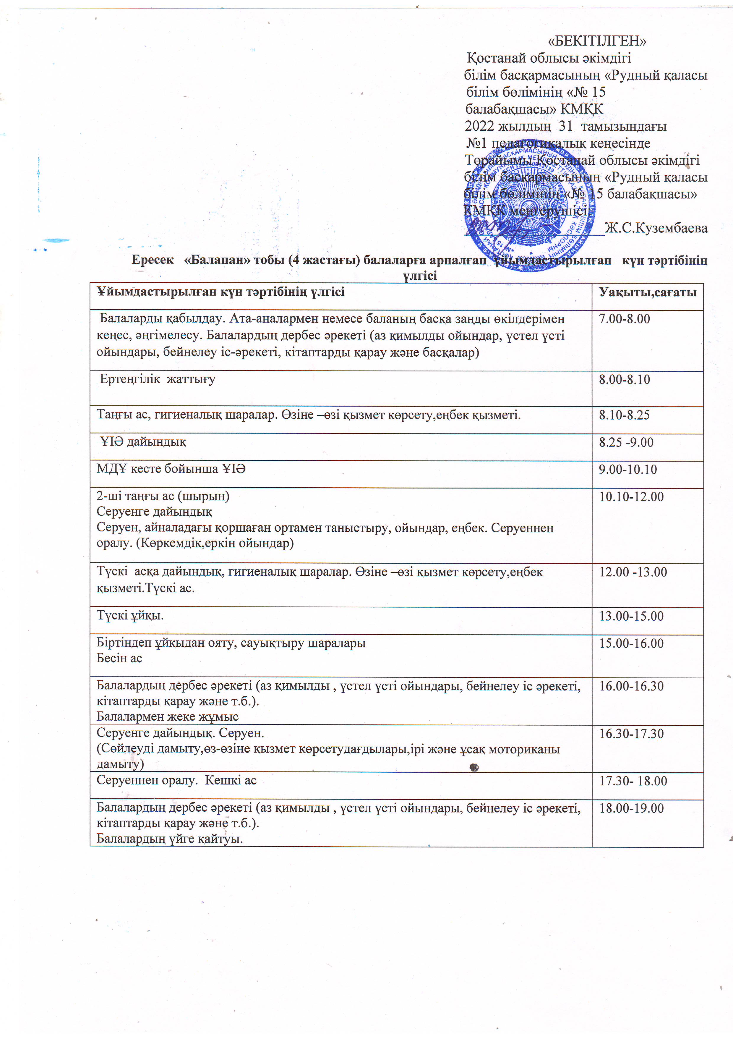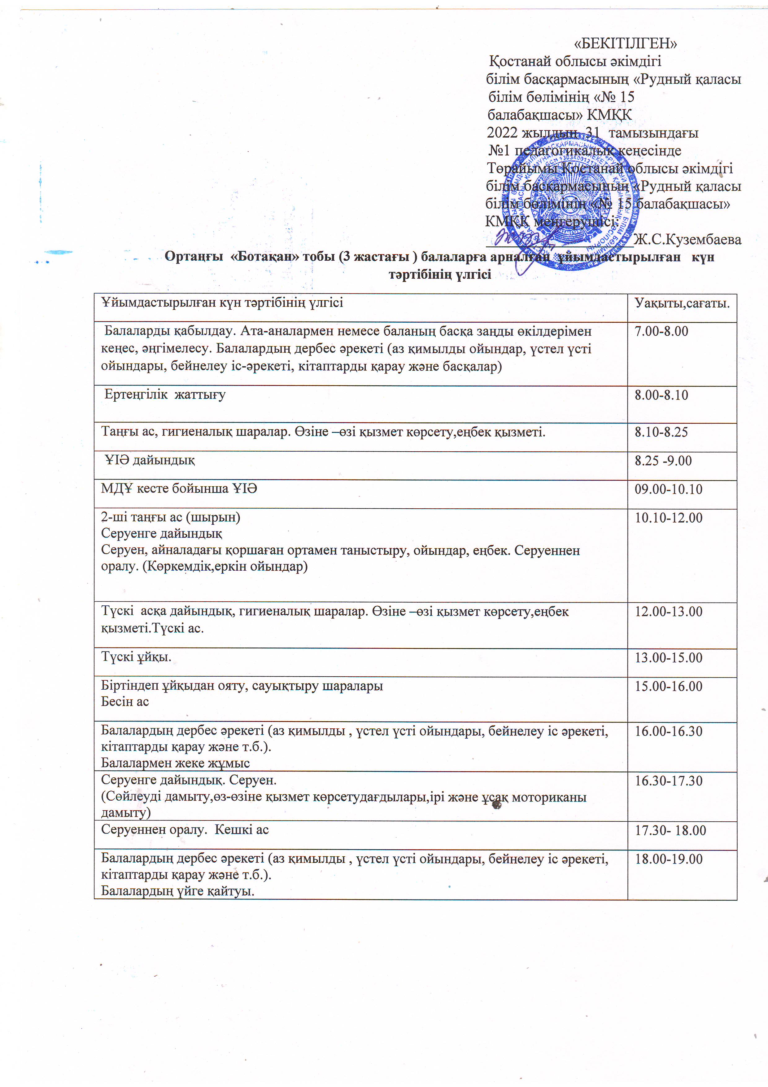 21-22ж КҮН ТӘРТІБІ ботақан |